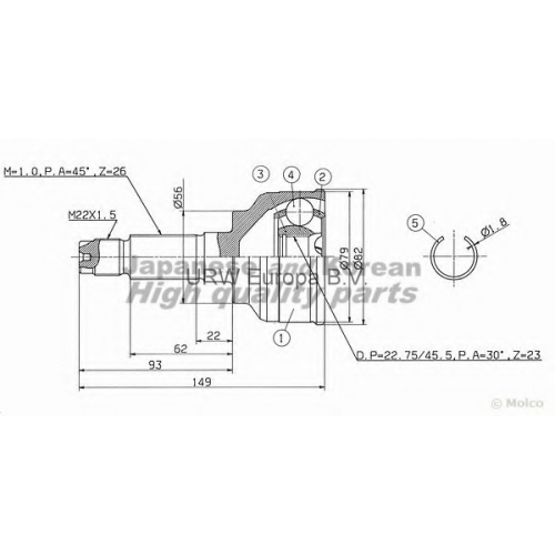 MA-270I ASHUKI Шарнирный комплект, приводной вал