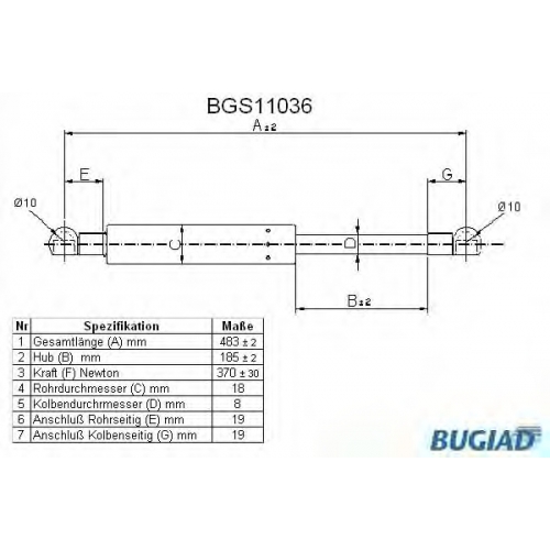 BGS11036 BUGIAD Газовая пружина, крышка багажник
