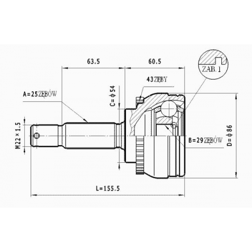 Число зубцов кольца ABS