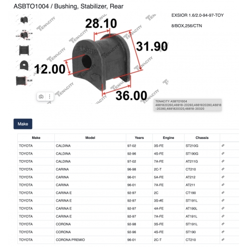 ASBTO1004 Tenacity Втулка стабилизатора